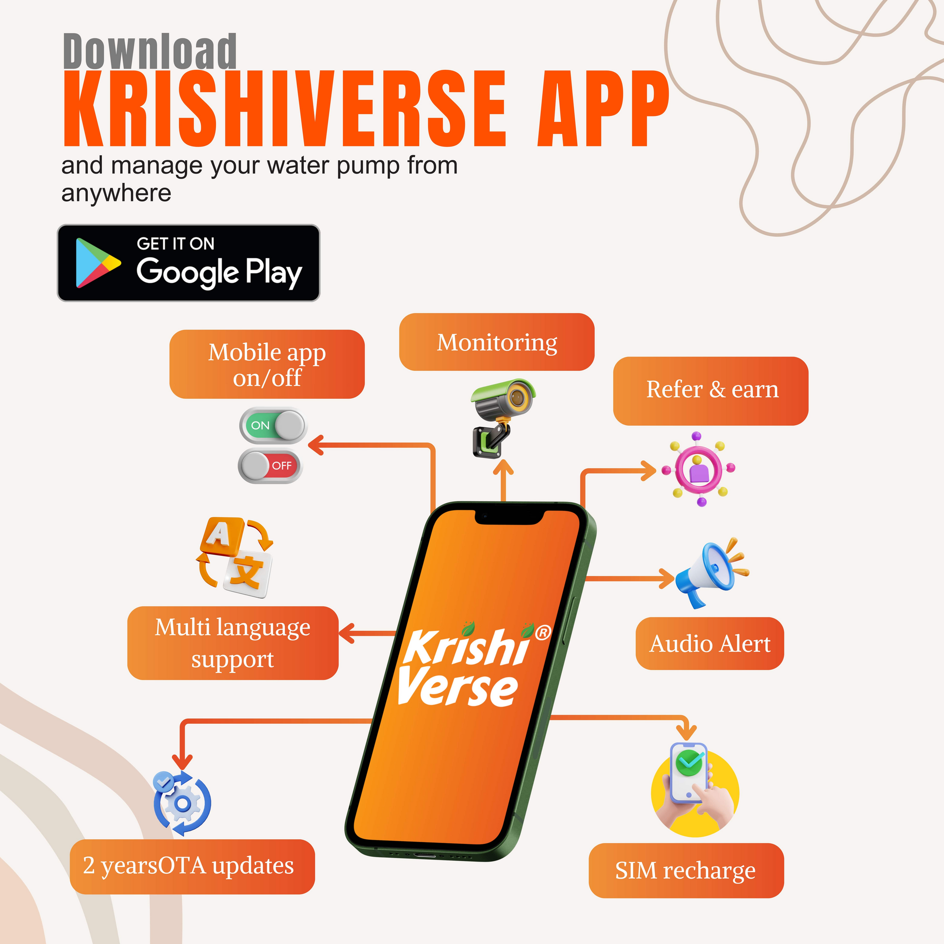 नीर लाइट इंटरनेट पंप नियंत्रक, कृषिवर्स मोबाइल ऐप ब्रांड का उपयोग करके कहीं से भी, कभी भी अपने पंप को नियंत्रित करें: ऑरानोस रोबोटिक्स
