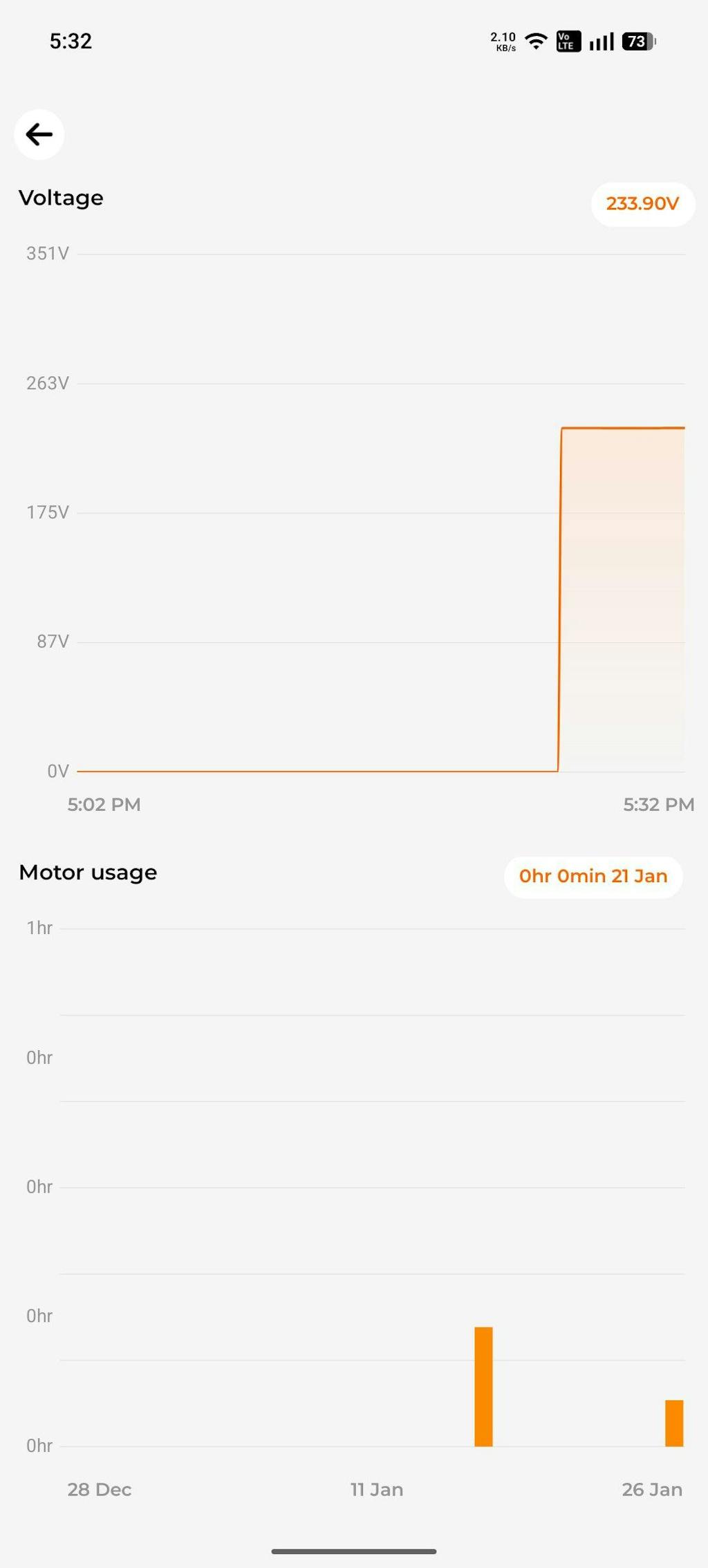 4. Data logs of electricity and pump usage for last 7 days.
